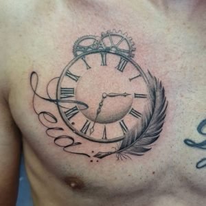 19 Wonderful Grey Ink Clock Tattoos